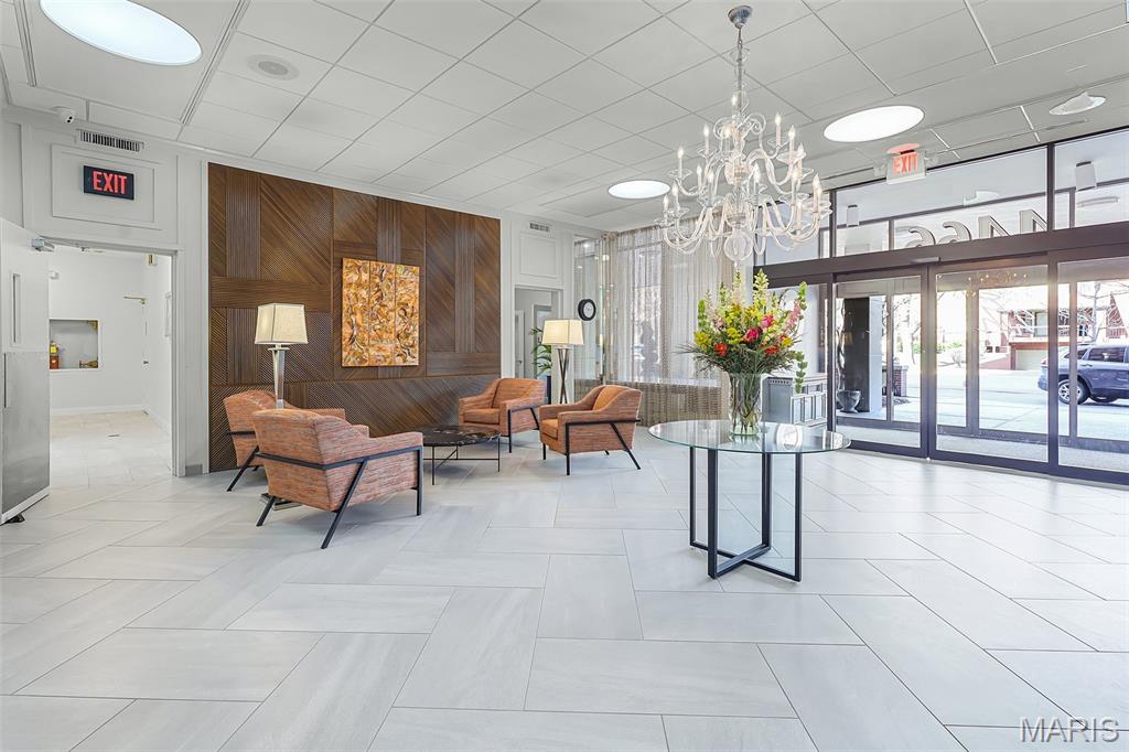 Rare Opportunity – Enjoy the spectacular views of the City from large picture windows or your private balcony of this updated 2 bedroom, 2 bath condo with a unique floor plan that sets this unit apart from other units in the desirable Executive House in the vibrant CWE. All the hard work has been done for you. High end kitchen with stainless steel appliances, granite countertops, gas range, built-in microwave, ample storage and a breakfast bar to enjoy your morning coffee. Large primary bedroom includes a spacious custom closet as well as a large ensuite full bath with marble tile, glass shower enclosure with jetted fixtures, a built-in closet, and granite vanity top. Second bedroom is a private suite with full bath. It includes a Murphy bed making it a flexible space that can also be used as a guest room, home office, and workout area. Bamboo flooring, recessed lighting, remote-control blackout shades, crown molding and in-unit laundry complete this oasis in the city. The unit can be sold fully or partially furnished, negotiated separately with owners. The Executive House is conveniently located to the BJC complex, Cortex, Public Transportation, Forest Park, Whole Foods and more. Condo fee includes 24/7 security, doorman, elevators, in-ground heated pool, on-site mgmt., heating, cooling, water, sewer and trash. Off-street, gated, assigned parking available for an extra fee. Move right in and enjoy all the Central West End has to offer!
